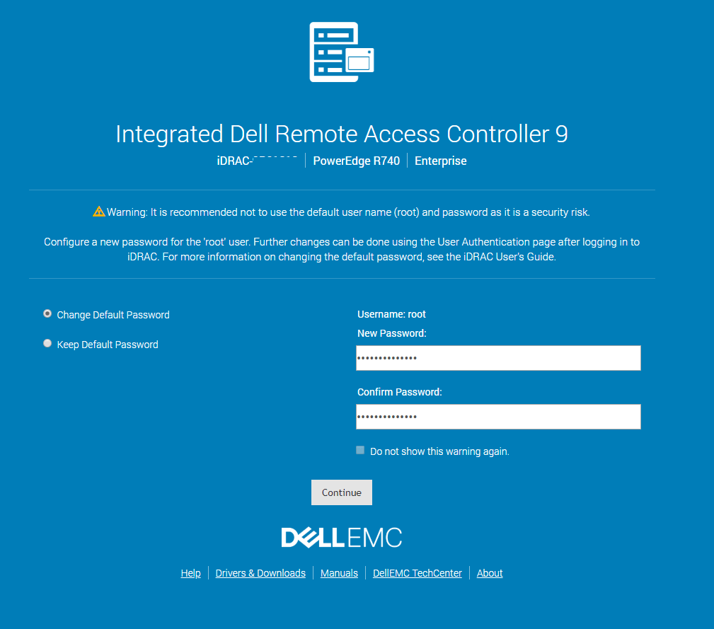 Gelen ekranda Parola değiştirmemi gerektiğini belirtmektedir. Kompleks bir parola oluşturuyorum ve “Continue” diyorum