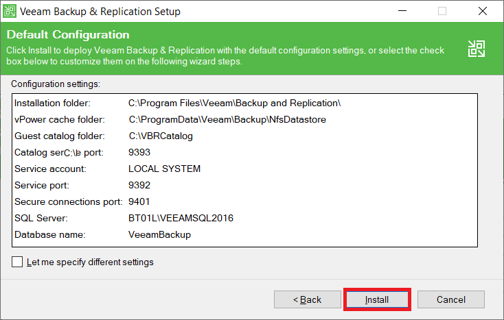 Gelen ekranda Özet bilgiler yer almaktadır. “Install” diyerek Veeam Backup & Replication kurulumuna başlıyorum.