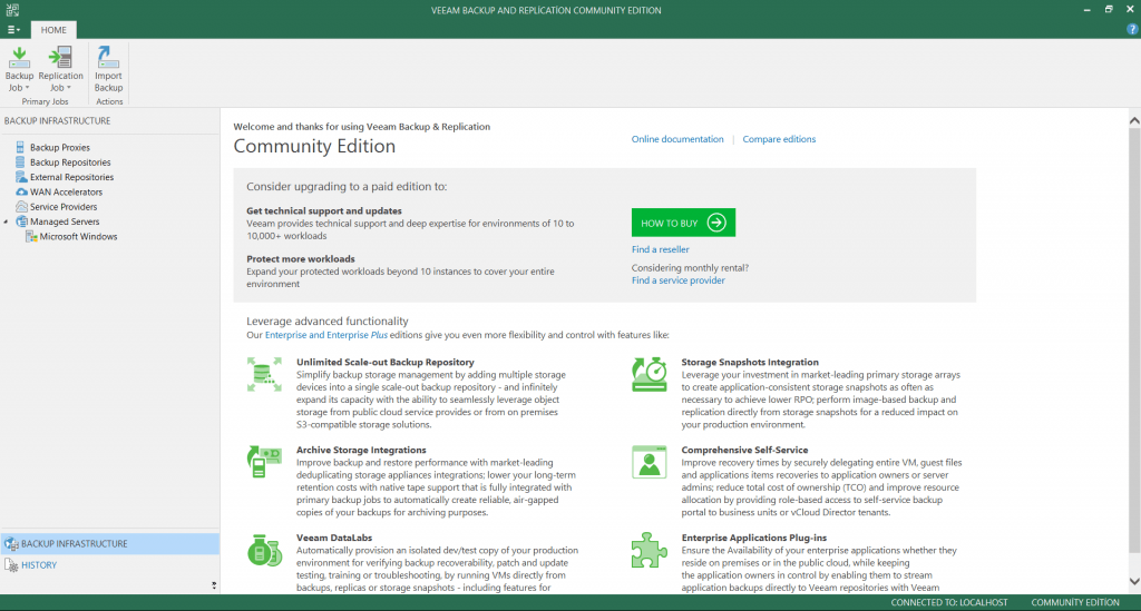 Ürün kurulum dosyalarını https://www.veeam.com/tr/vm-backup-recovery-replication-software.html?ad=menu-products adresi üzerinden indirebilir. 10 adet sanal makine için ücretsiz olarak kullanım sağlayabilirsiniz. Dilerseniz Veeam tarafına üye olarak 30 günlük ücretsiz deneme sürümünü test edebilirsiniz.
