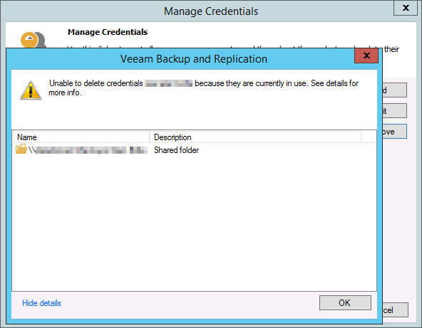 Veeam Backup & Replication Unable to Delete Credentials Hatası