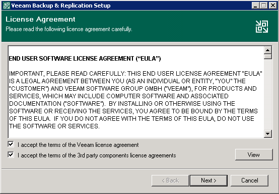Bu bölümde görebileceğiniz gibi sistemimizde yüklü olan Veeam Backup yazılımının versiyon bilgileri görünmektedir. Bir sonraki ekrana geçmek için devam ediyorum.