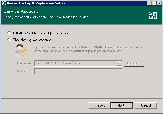 Servis Hesabını bu bölümde belirleyebiliyorsunuz, ben Local System Account ile devam ediyorum.
