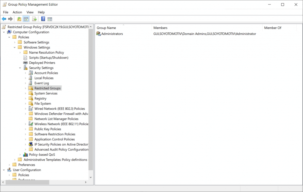 Windows Server 2019 AD üzerinde Restricted Group (Local Admin Yetkilerinin Kaldırılması)