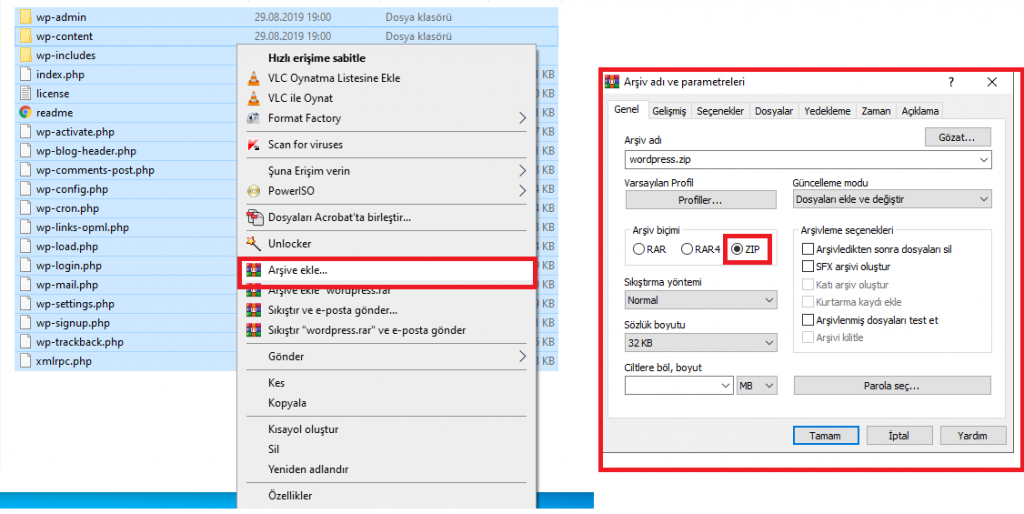 Dosyalarımızı .zip uzantılı olacak şekilde winrar programı ile arşivliyorum.