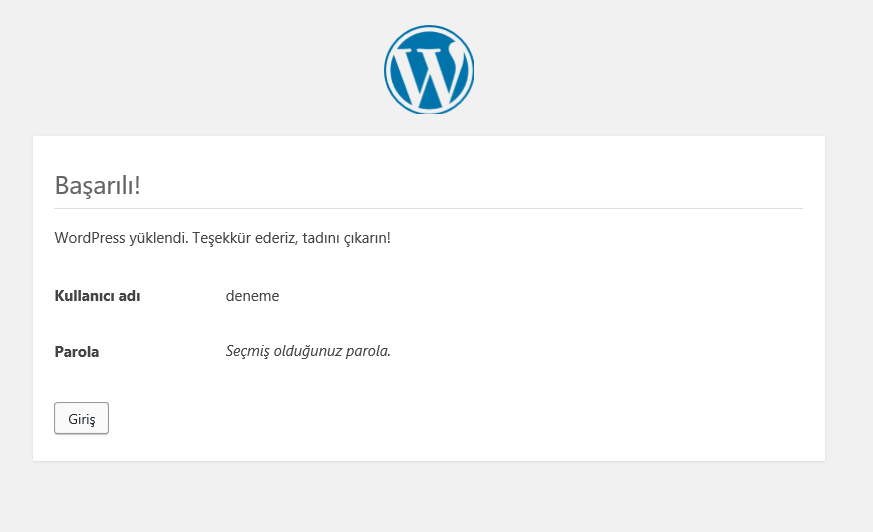 Kurulum Başarılı. Artık Panelimize giriş yapıp web sitemizin içeriğini detaylı olarak yönetebiliriz.