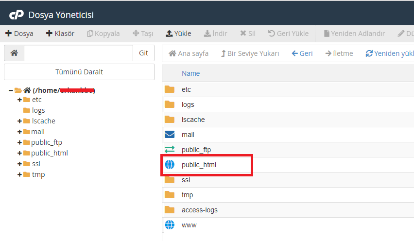 Açılan ekranda “public_html” klasörüne gidiyorum.